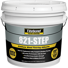 Titebond 821 Premium Urethane Wood Flooring Adhesive is a high-performance formula ideal for bonding engineered, solid plank, cork underlayment and bamboo flooring to common underlayments and subfloors. Its non-slumping characteristics, not available in other urethane adhesives, allow the troweled ridges to bridge normal gaps betwee...